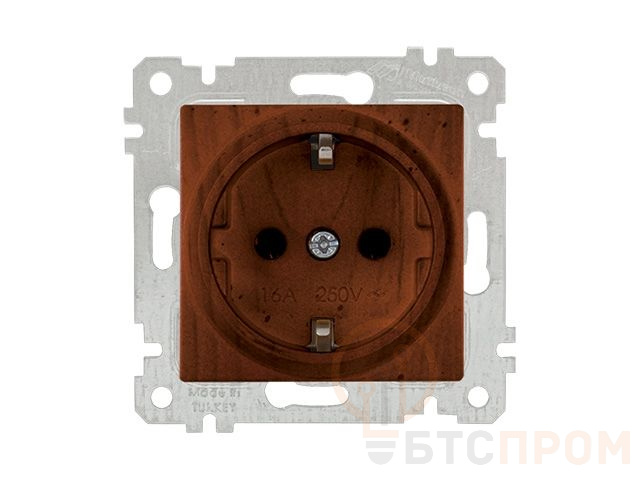 Розетка 1-ая (скрытая, без рамки, с/з) орех, RITA, MUTLUSAN (16 A, 250 V, IP 20) 2200 600 0257 фото в каталоге от BTSprom.by