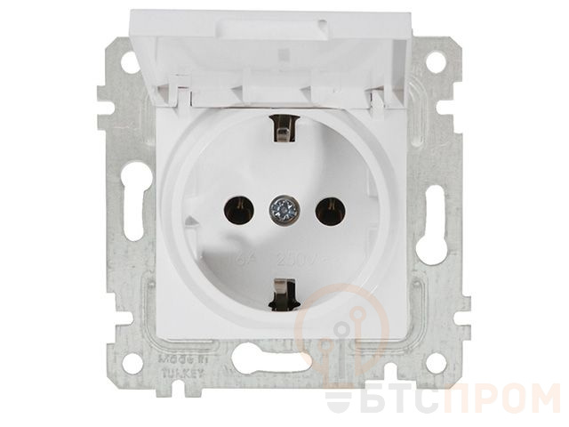 Розетка 1-ая (скрытая, без рамки, с/з, с крышкой) белая, RITA, MUTLUSAN (16 A, 250 V, IP 20) 2200 610 0201