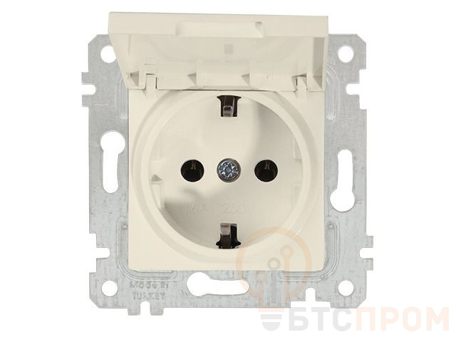 Розетка 1-ая (скрытая, без рамки, с/з, с крышкой) кремовая, RITA, MUTLUSAN (16 A, 250 V, IP 20) 2200 610 0202
