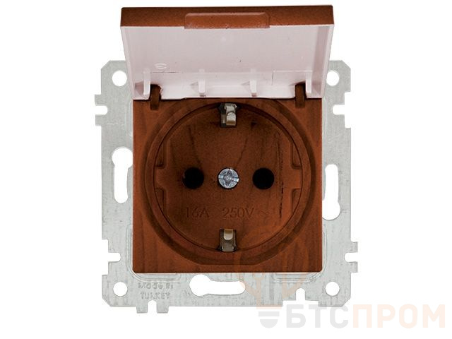 Розетка 1-ая (скрытая, без рамки, с/з, с крышкой) орех, RITA, MUTLUSAN (16 A, 250 V, IP 20) 2200 610 0257