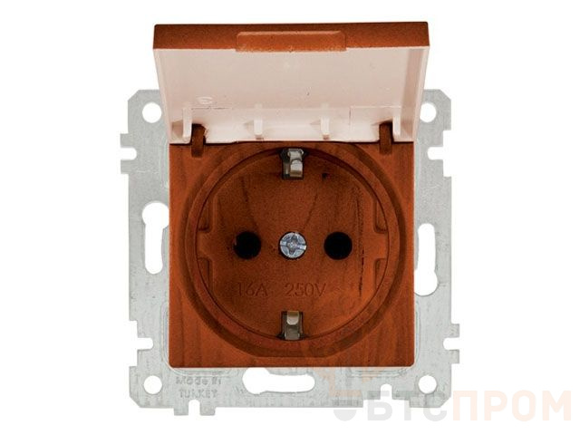 Розетка 1-ая (скрытая, без рамки, с/з, с крышкой) вишня, RITA, MUTLUSAN (16 A, 250 V, IP 20) 2200 610 0256