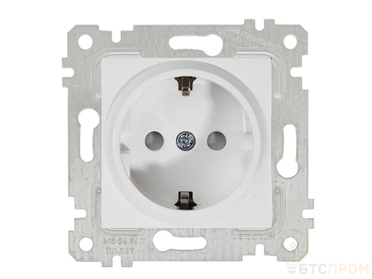 Розетка 1-ая (скрытая, без рамки, с/з, шторки) белая, RITA, MUTLUSAN (16 A, 250 V, IP 20) 2200 605 0201
