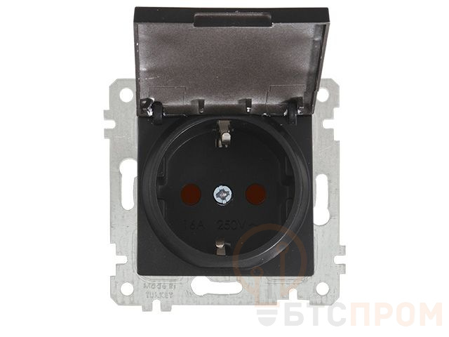 Розетка 1-ая (скрытая, без рамки, с/з, шторки, с крышкой) черная, RITA, MUTLUSAN (16 A, 250 V, IP 20) 2200 611 0284