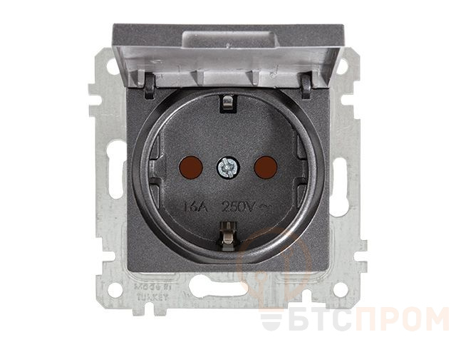 Розетка 1-ая (скрытая, без рамки, с/з, шторки, с крышкой) дымчатая, RITA, MUTLUSAN (16 A, 250 V, IP 20) 2200 611 0295