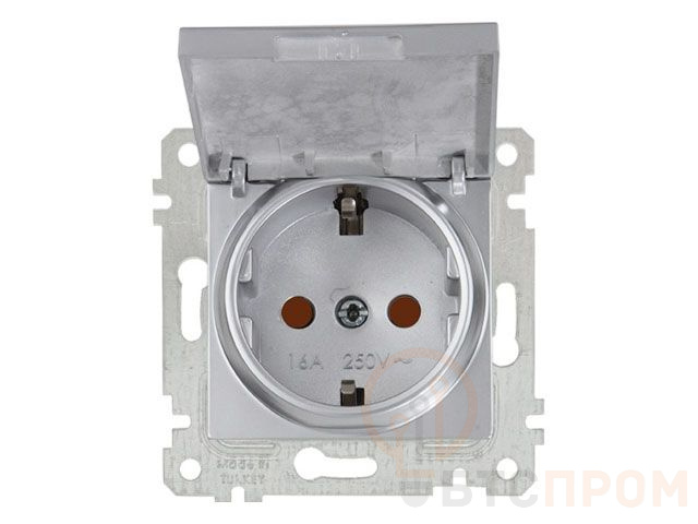 Розетка 1-ая (скрытая, без рамки, с/з, шторки,с крышкой) серебро, RITA, MUTLUSAN (16 A, 250 V, IP 20) 2200 611 0282
