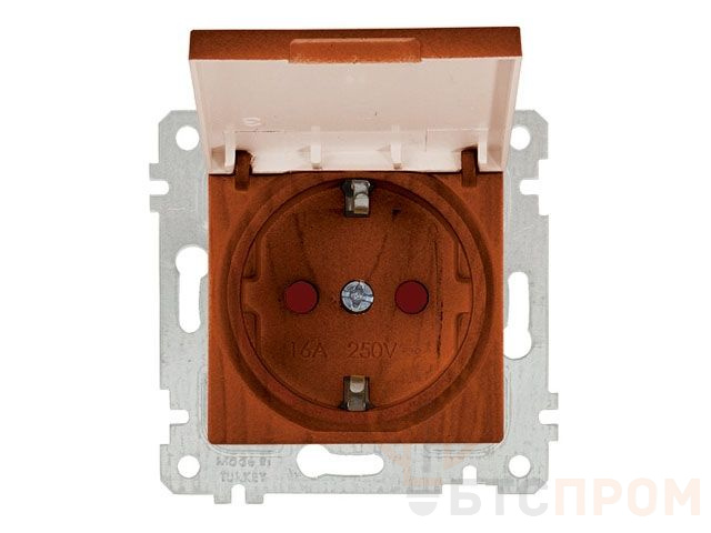 Розетка 1-ая (скрытая, без рамки, с/з, шторки,с крышкой) вишня, RITA, MUTLUSAN (16 A, 250 V, IP 20) 2200 611 0256