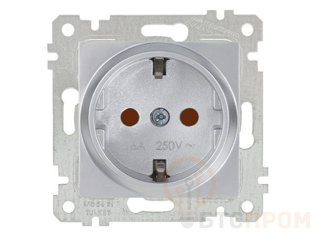 Розетка 1-ая (скрытая, без рамки, с/з, шторки) серебро, RITA, MUTLUSAN (16 A, 250 V, IP 20) 2200 605 0282