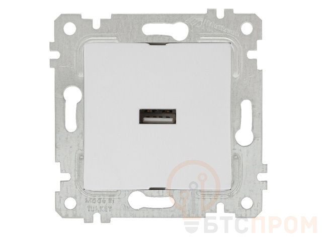 Розетка 1-ая USB (скрытая, без рамки) белая, RITA, MUTLUSAN (USB-зарядка, 5V-2.1A) 2200 448 0101 фото в каталоге от BTSprom.by