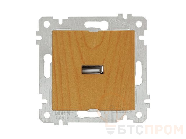 Розетка 1-ая USB (скрытая, без рамки) дуб, RITA, MUTLUSAN (USB-зарядка, 5V-2.1A) 2200 448 0158 фото в каталоге от BTSprom.by