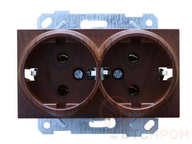 Розетка 2-ая (скрытая, с/з, керамика) орех, RITA, MUTLUSAN (16 A, 250 V, IP 20) 2200 200 0257 фото в каталоге от BTSprom.by