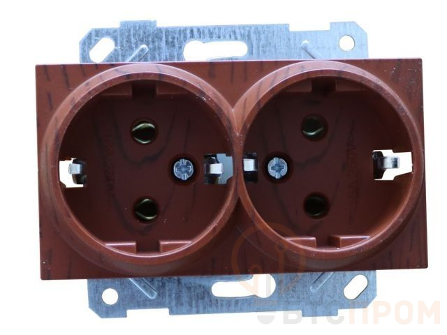 Розетка 2-ая (скрытая, с/з, керамика) вишня, RITA, MUTLUSAN (16 A, 250 V, IP 20) 2200 200 0256 фото в каталоге от BTSprom.by