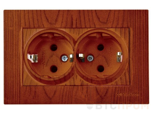 Розетка 2-ая (скрытая,с/з) орех, RITA, MUTLUSAN (16 A, 250 V, IP 20) 2220 202 0257 фото в каталоге от BTSprom.by