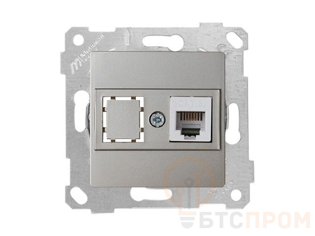 Розетка телефонная 1хRJ12 (скрытая, без рамки) титан, RITA, MUTLUSAN 2200 125 0183 фото в каталоге от BTSprom.by