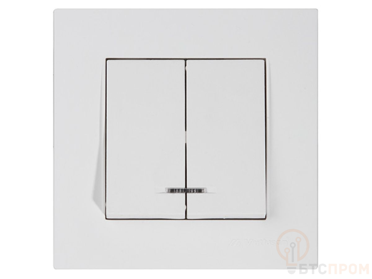Выключатель 2-клав. (c подсветкой, скрытый, пруж. зажим) белый, RITA, MUTLUSAN (10 A, 250 V, IP 20) 2220 426 0101