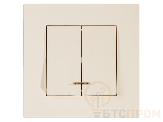 Выключатель 2-клав. (c подсветкой, скрытый, пруж. зажим) кремовый, RITA, MUTLUSAN (10 A, 250 V, IP 20) 2220 426 0102