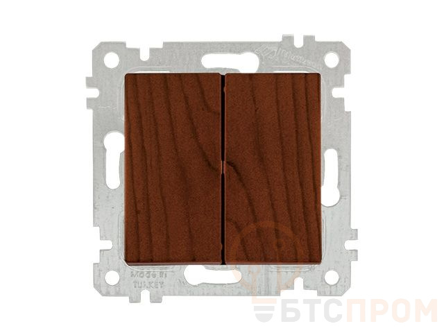Выключатель 2-клав. (скрытый, без рамки, пруж. зажим) орех, RITA, MUTLUSAN (10 A, 250 V, IP 20) 2200 402 0157