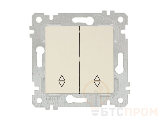 Выключатель проходной 2-клав. (скрытый, без рамки, пруж. зажим) кремовый, RITA, MUTLUSAN (10 A, 250 V, IP 20) 2200 404 0102