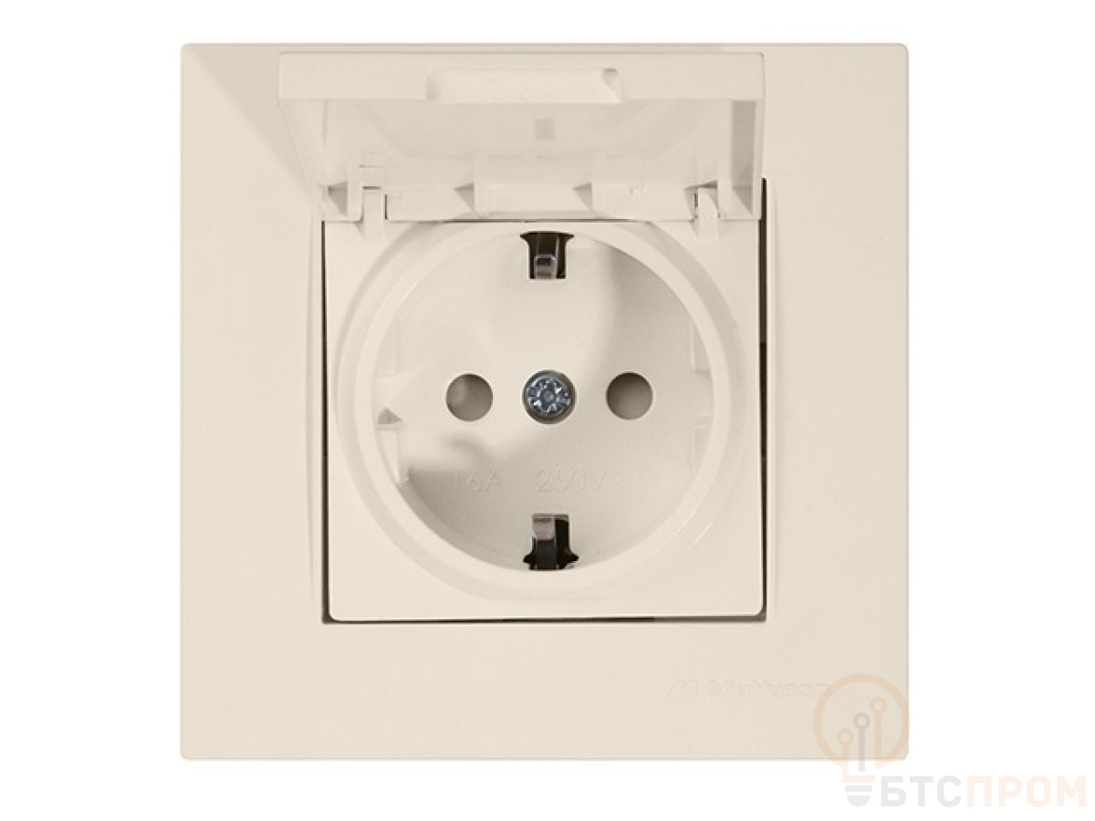 Розетка 1-ая (скрытая, с/з, с крышкой) кремовая, RITA, MUTLUSAN (16 A, 250 V, IP 20) 2220 610 0202 фото в каталоге от BTSprom.by