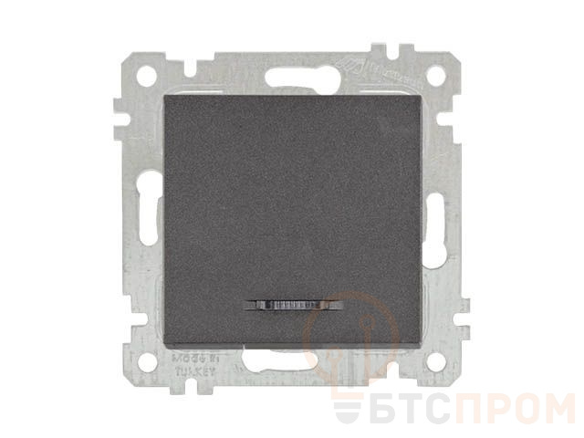 Выключатель 1-клав. (с подсветкой, скрытый, без рамки, винт. зажим) дымчатый, RITA, MUTLUSAN (10 A, 250 V, IP 20) 2200 415 0295