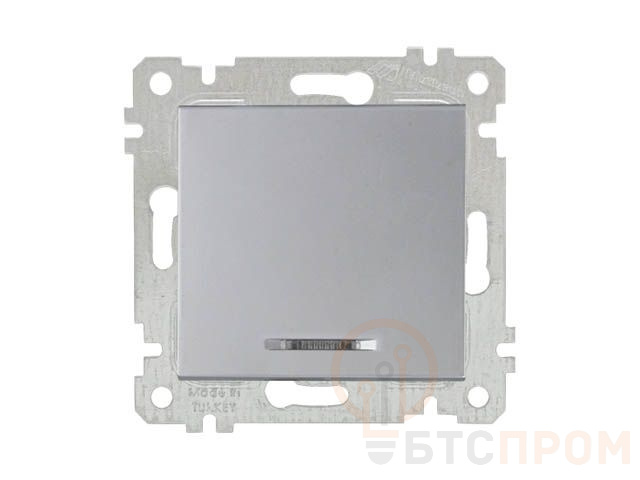 Выключатель 1-клав. (с подсветкой, скрытый, без рамки, винт. зажим) серебро, RITA, MUTLUSAN (10 A, 250 V, IP 20) 2200 415 0282