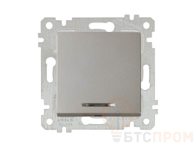 Выключатель 1-клав. (с подсветкой, скрытый, без рамки, винт. зажим) титан, RITA, MUTLUSAN (10 A, 250 V, IP 20) 2200 415 0283