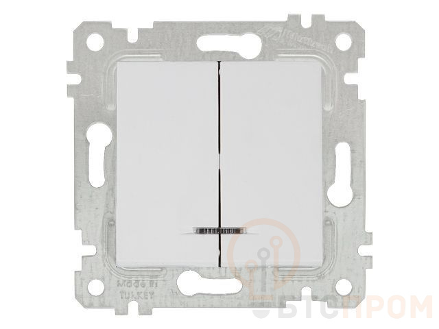 Выключатель 2-клав. (с подсветкой, скрытый, без рамки, винт. зажим) белый, RITA, MUTLUSAN (10 A, 250 V, IP 20) 2200 426 0201