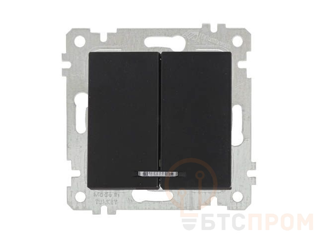 Выключатель 2-клав. (с подсветкой, скрытый, без рамки, винт. зажим) черный, RITA, MUTLUSAN (10 A, 250 V, IP 20) 2200 426 0284