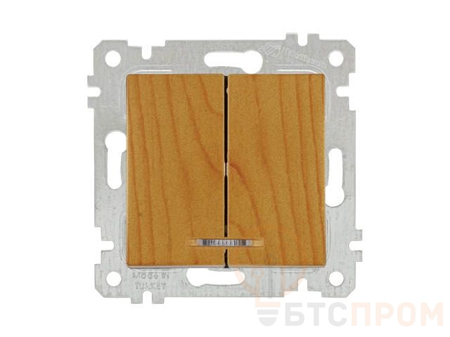 Выключатель 2-клав. (с подсветкой, скрытый, без рамки, винт. зажим) дуб, RITA, MUTLUSAN (10 A, 250 V, IP 20) 2200 426 0258