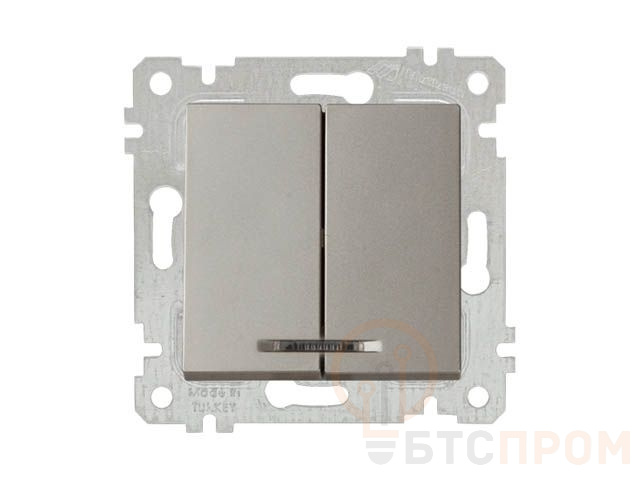 Выключатель 2-клав. (с подсветкой, скрытый, без рамки, винт. зажим) титан, RITA, MUTLUSAN (10 A, 250 V, IP 20) 2200 426 0283