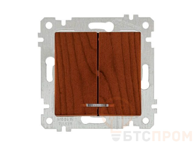 Выключатель 2-клав. (с подсветкой, скрытый, без рамки, винт. зажим) вишня, RITA, MUTLUSAN (10 A, 250 V, IP 20) 2200 426 0256