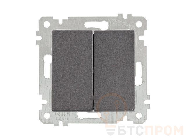 Выключатель 2-клав. (скрытый, без рамки, винт. зажим) дымчатый, RITA, MUTLUSAN (10 A, 250 V, IP 20) 2200 402 0295