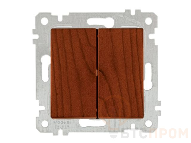 Выключатель 2-клав. (скрытый, без рамки, винт. зажим) вишня, RITA, MUTLUSAN (10 A, 250 V, IP 20) 2200 402 0256