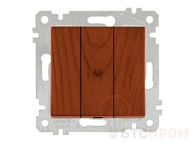 Выключатель 3-клав. (скрытый, без рамки, винт. зажим) вишня, RITA, MUTLUSAN (10 A, 250 V, IP 20) 2200 409 0256