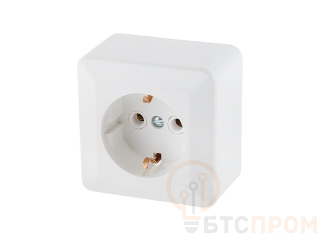 Розетка одноместная открытой установки с заземляющим контактом предназначена для присоединения электрических приемников с номинальным напряжением 250 В к электрической сети переменного тока в нормальных климатических условиях внешней среды по ГОСТ 15150 и ГОСТ 15543.1.