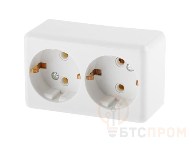 Розетка двухместная открытой установки с заземляющим контактом, с монтажной панелью предназначена для присоединения электрических приемников с номинальным напряжением 250 В к электрической сети переменного тока в нормальных климатических условиях внешней среды по ГОСТ 15150 и ГОСТ 15543.1.