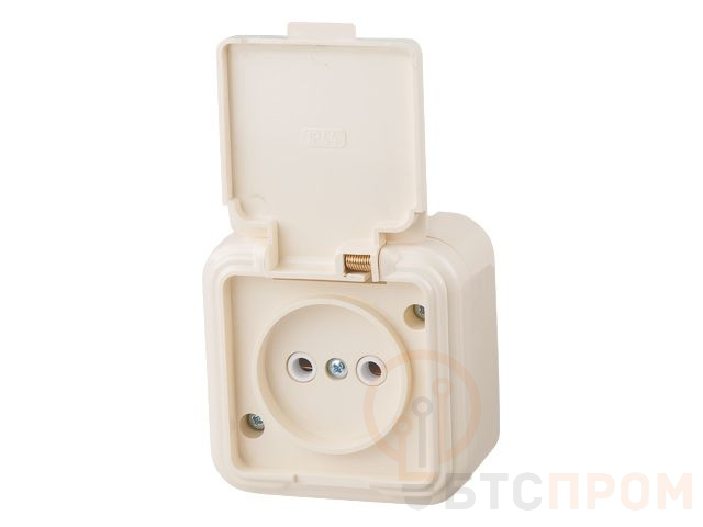 Розетка 1-ая (открытая, б/з, брызг. защ.) бежевая, Стандарт, Юпитер (RA 16-201 БЖ) (ЮПИТЕР) JP7430-06