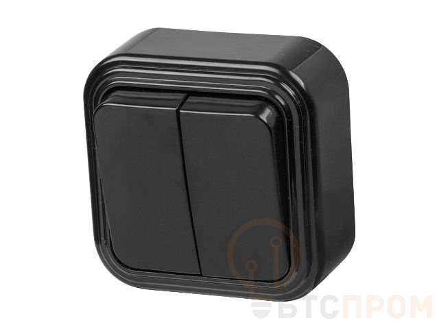 Выключатель 2 клав. (открытый, до 6А) черный, Стандарт, Юпитер (VA56-232-Ч) (ЮПИТЕР) JP7412-02