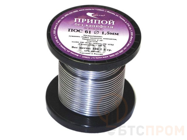 Припой ПОС 61 проволока, катушка ф1,5мм (100г) (без канифоли) (Векта) 30198 фото в каталоге от BTSprom.by