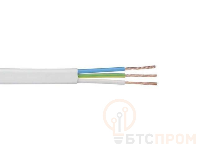 Провод ПуГВВ-П 3х1.5 Б (м) ПромЭл - установочный гибкий провод с 3 медными жилами сечением 1,5 кв.мм. С изоляцией из ПВХ, с внешней оболочкой из ПВХ с заполнением, белого цвета.