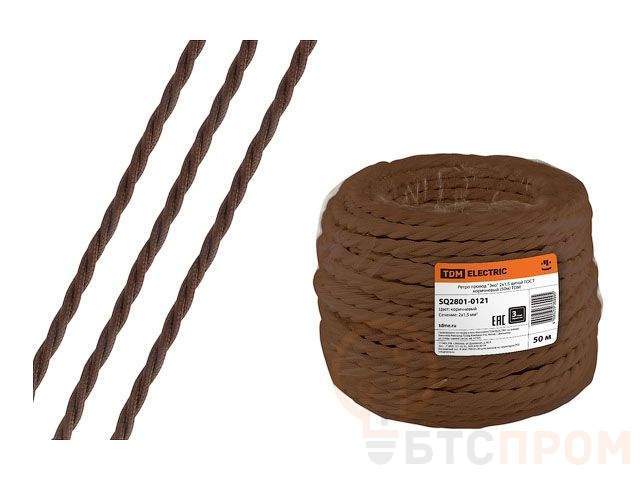 Ретро провод "Эко" 2х1,5 витой, коричневый (50м) TDM SQ2801-0121 фото в каталоге от BTSprom.by