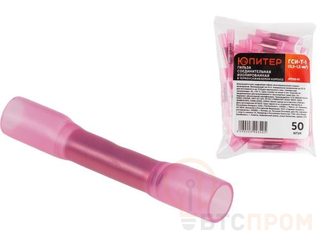 Гильза соединительная изолированная в термоусаживаемом корпусе ГСИ-Т-1 (0.5-1.5 мм2) (50 шт) Юпитер (ЮПИТЕР) JP7215-01