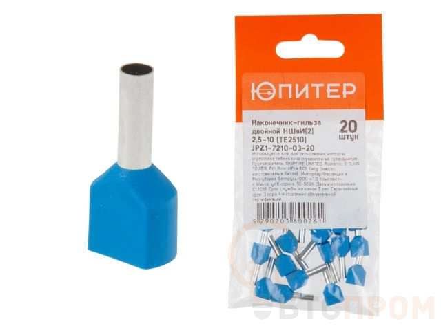 Наконечник-гильза двойной НШвИ(2) 2,5-10 (TE2510) (20 шт) Юпитер (с изолированным фланцем) (ЮПИТЕР) JPZ1-7210-03-20