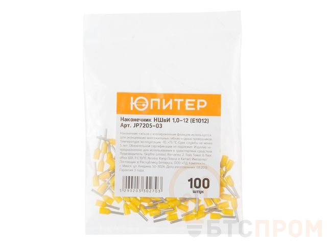 Наконечник штыревой втулочный изолированный (НШвИ) ЮПИТЕР является современной альтернативой обязательному обслуживанию многожильных проводников при присоединении к клеммам.