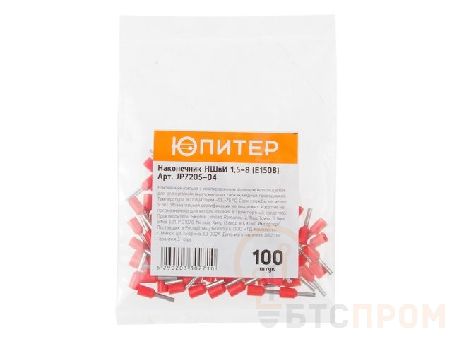 Наконечник штыревой втулочный изолированный (НШвИ) ЮПИТЕР является современной альтернативой обязательному обслуживанию многожильных проводников при присоединении к клеммам.