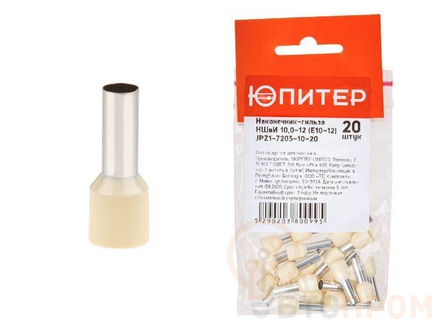 Наконечник-гильза НШвИ 10,0-12 (E10-12) (20 шт) Юпитер (с изолированным фланцем) (ЮПИТЕР) JPZ1-7205-10-20