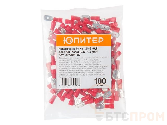 JP7204-01 Наконечник РпИм 1,5-7-0,8 плоский (мама) (0,5 - 1,5 мм2) (100 шт) Юпитер;