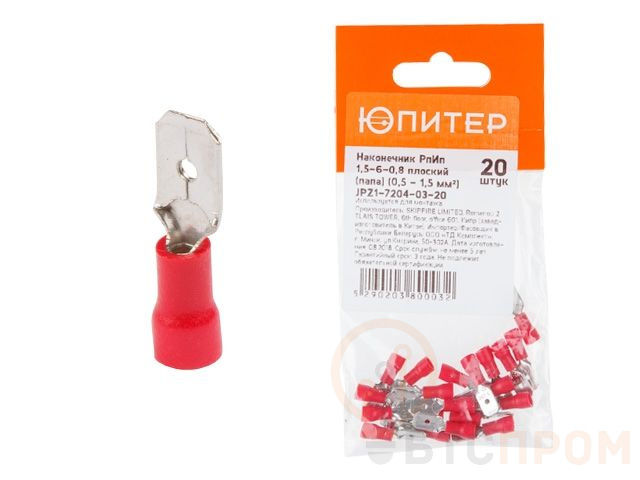JPZ1-7204-01-20 Наконечник РпИм 1,5-7-0,8 плоский (мама) (0,5 - 1,5 мм2) (20 шт) Юпитер;