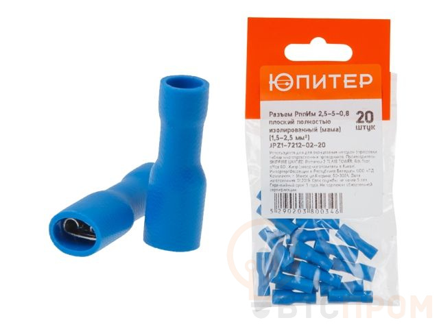 Разъем РппИм 2,5-5-0,8 плоский полностью изолированный (мама) (1,5 - 2,5 мм2) (20 шт) Юпитер (ЮПИТЕР) JPZ1-7212-02-20