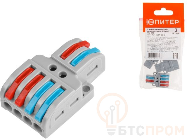 Клемма соединительная разветвительная СК-324 (2.5 мм2) (3 шт) ЮПИТЕР JPZ1-7201-09-3 фото в каталоге от BTSprom.by