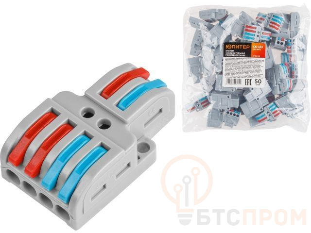 Клеммы соединительные ЮПИТЕР обеспечат быстрый монтаж и демонтаж проводников без дополнительных инструментов благодаря рычажку.